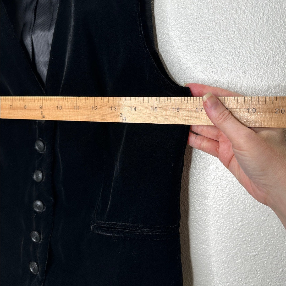 Zara Black Velour Tailored Button Front Vest Front Flap Details XS