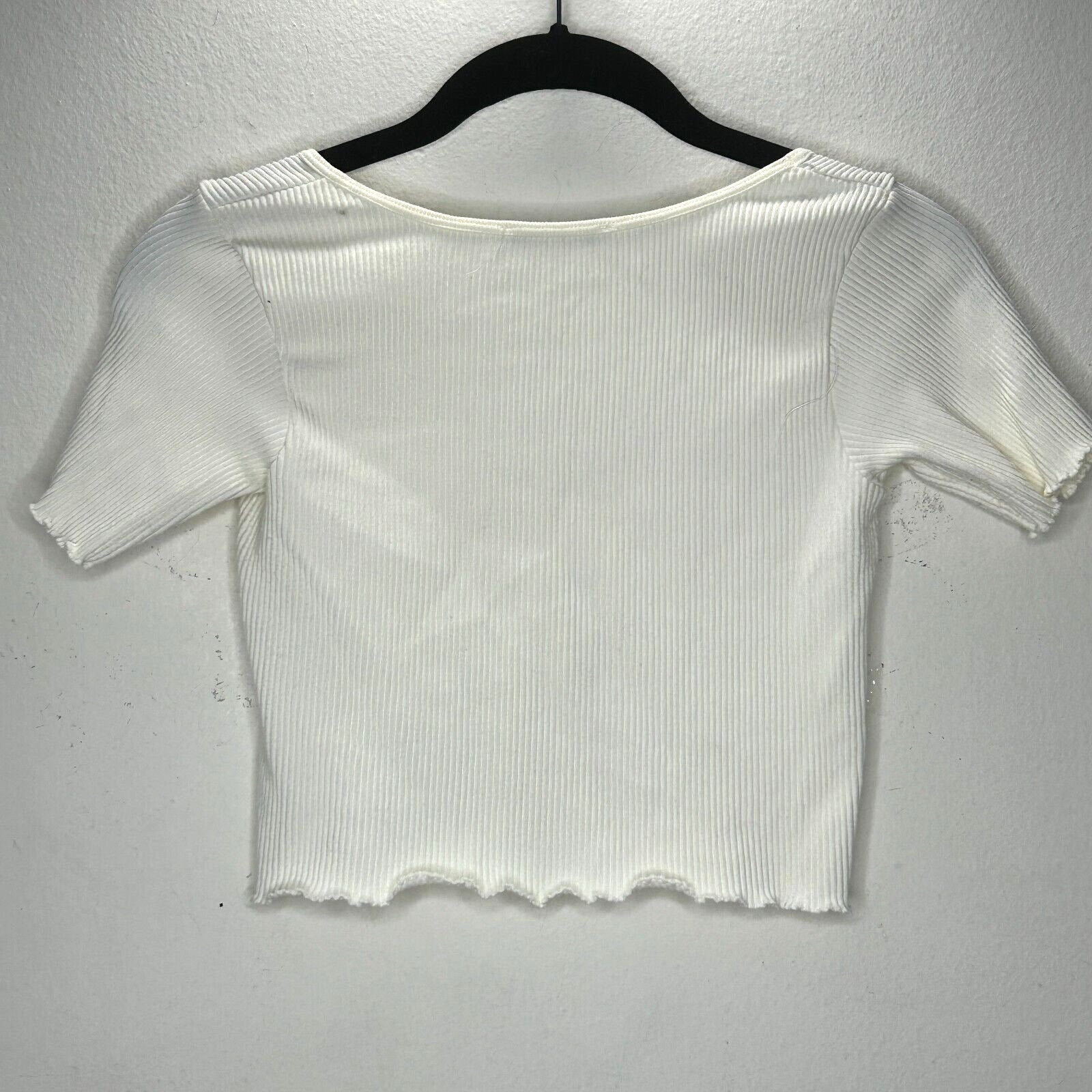 Zara Cream Ribbed Scoop Neck Top Short Sleeve Lettuce Hem Sleeves & Bottom XS