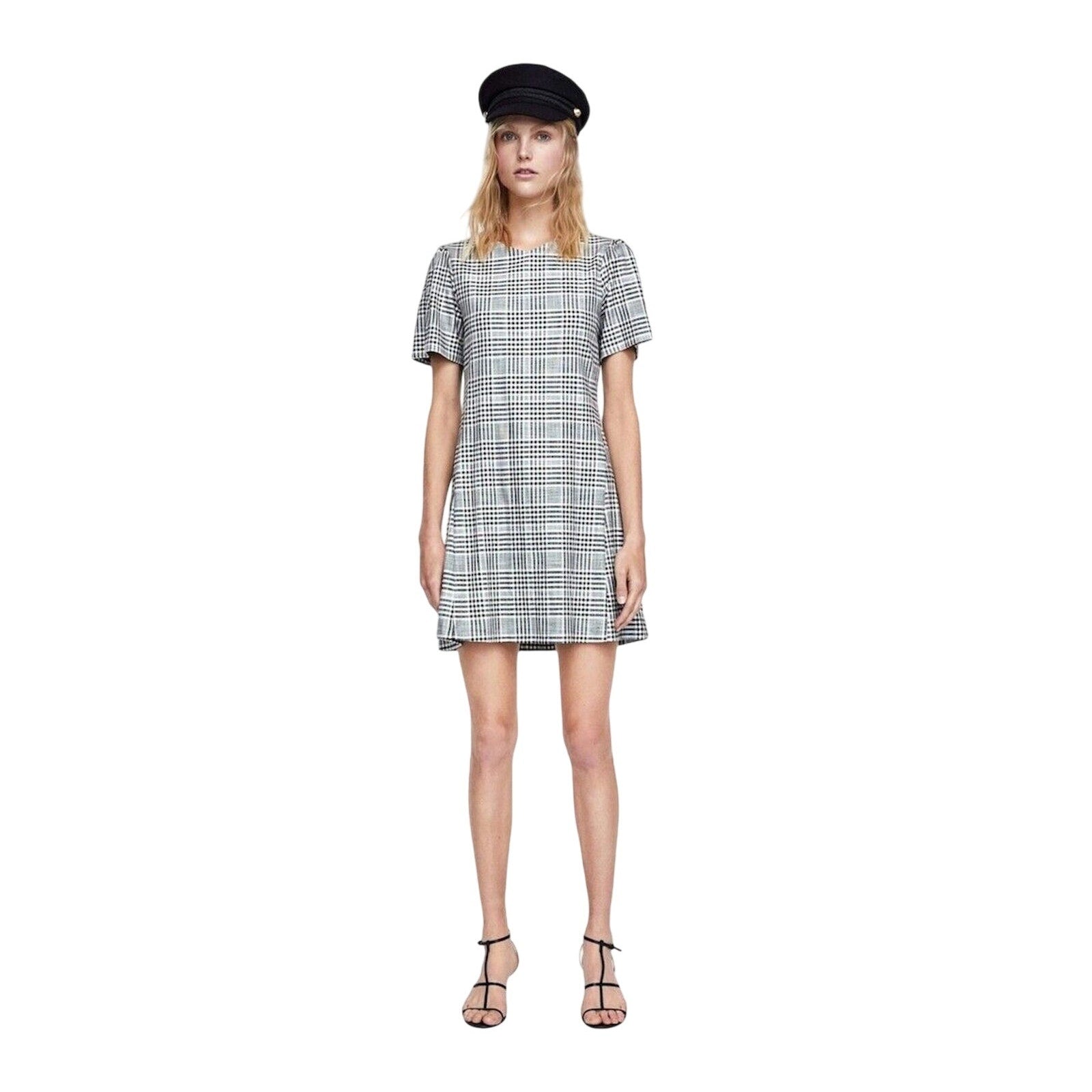 Zara Gingham Plaid Shift Dress Cap Sleeve Black & White
