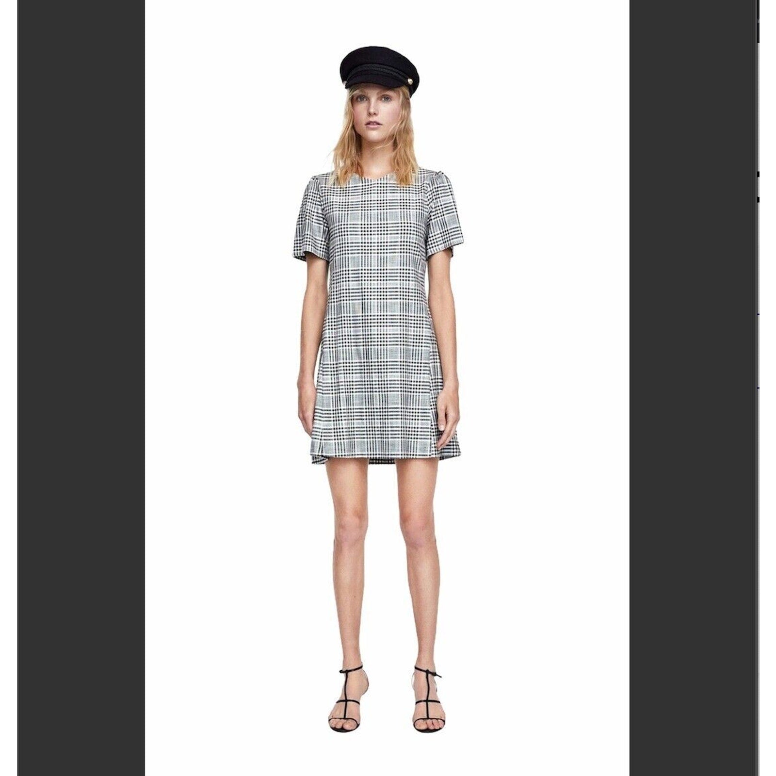 Zara Cute Gingham Plaid Shift Dress Short Sleeve Small Black and White Small