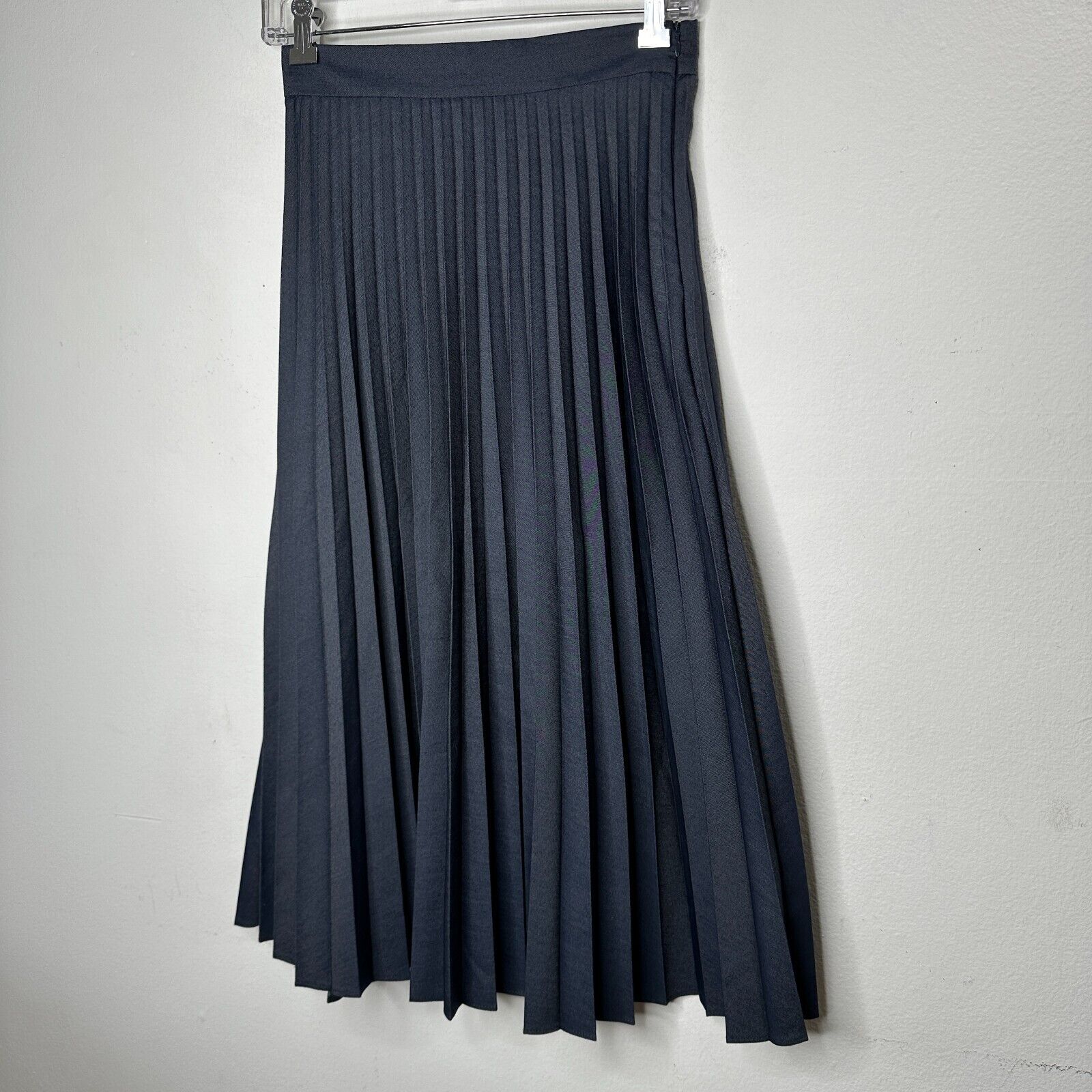 Zara Dark Blue Wash Box Pleated Denim Look Midi Skirt Waistband Side Zipper XS