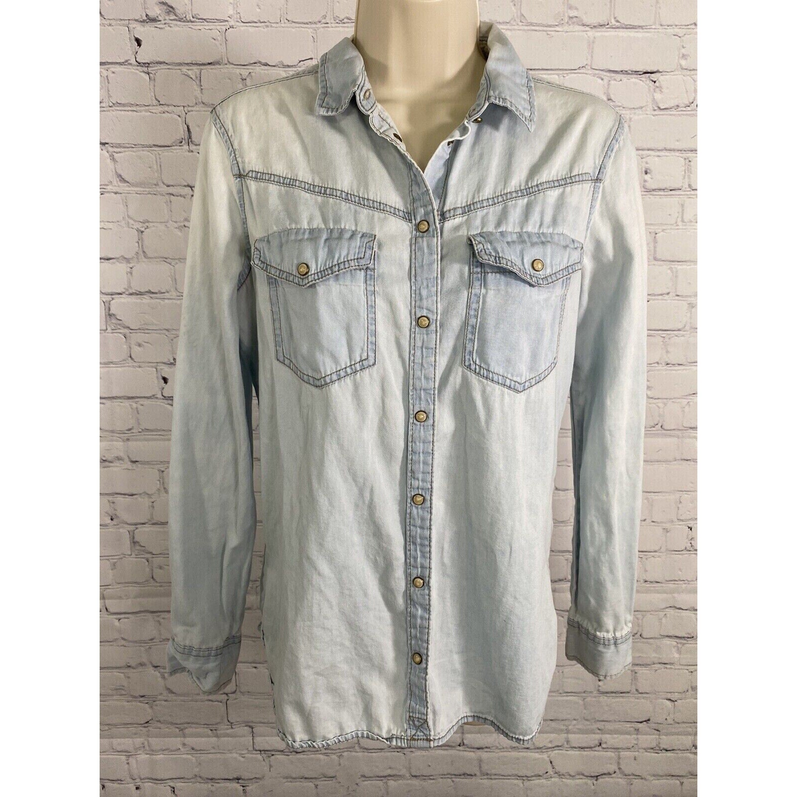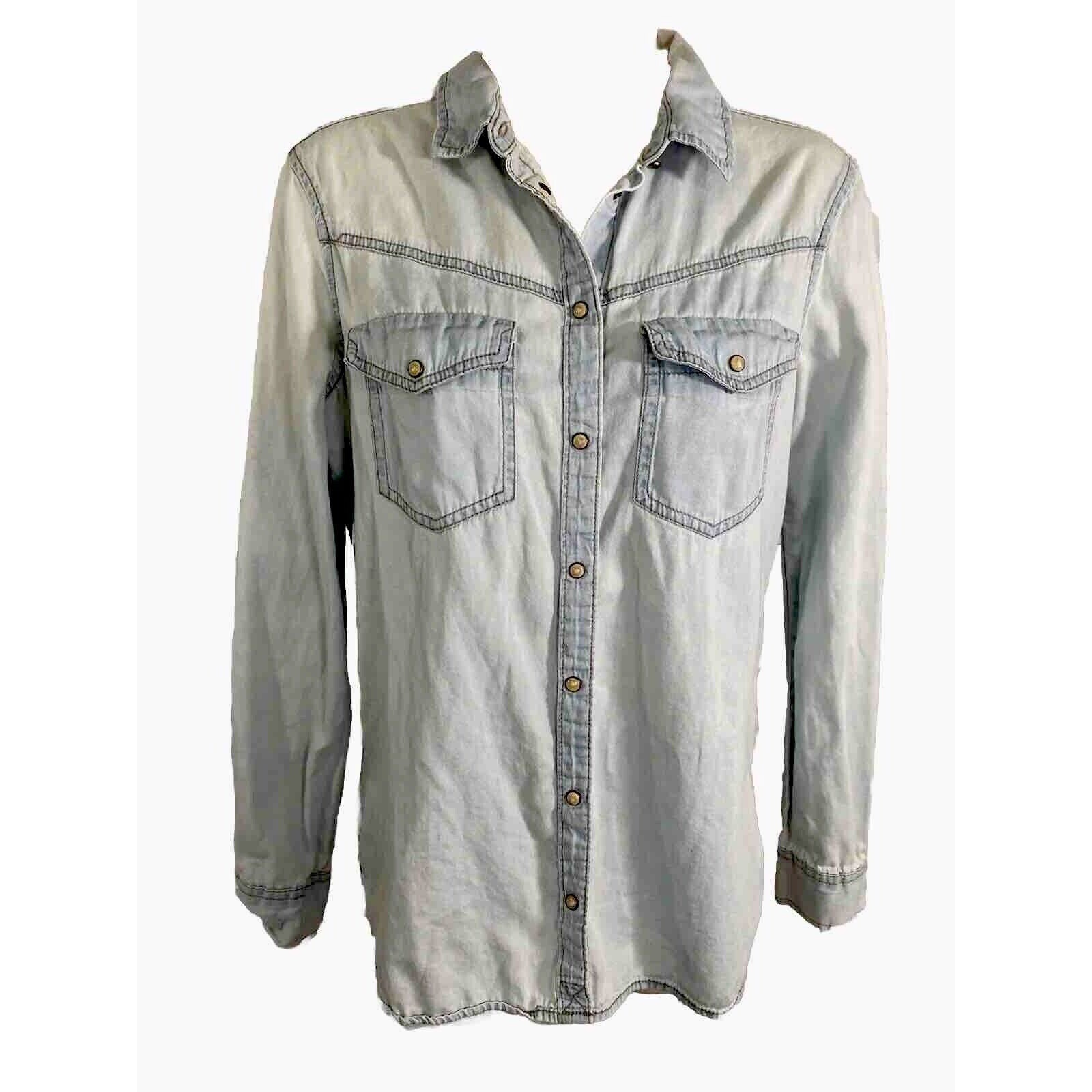 Zara Light Wash Blue Denim Pearl Snap Collared Front Pockets Long Sleeve Medium