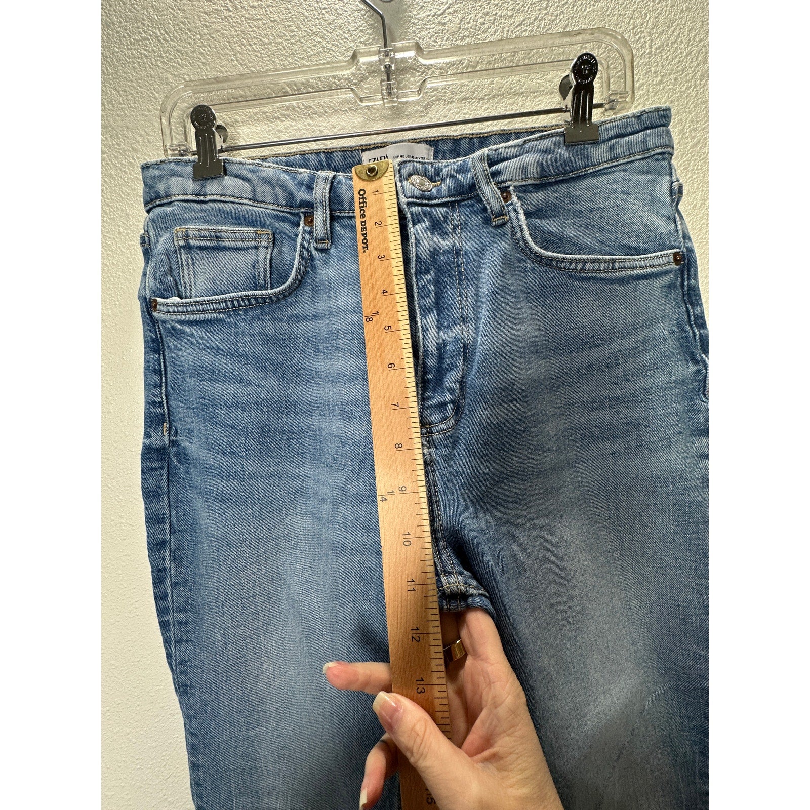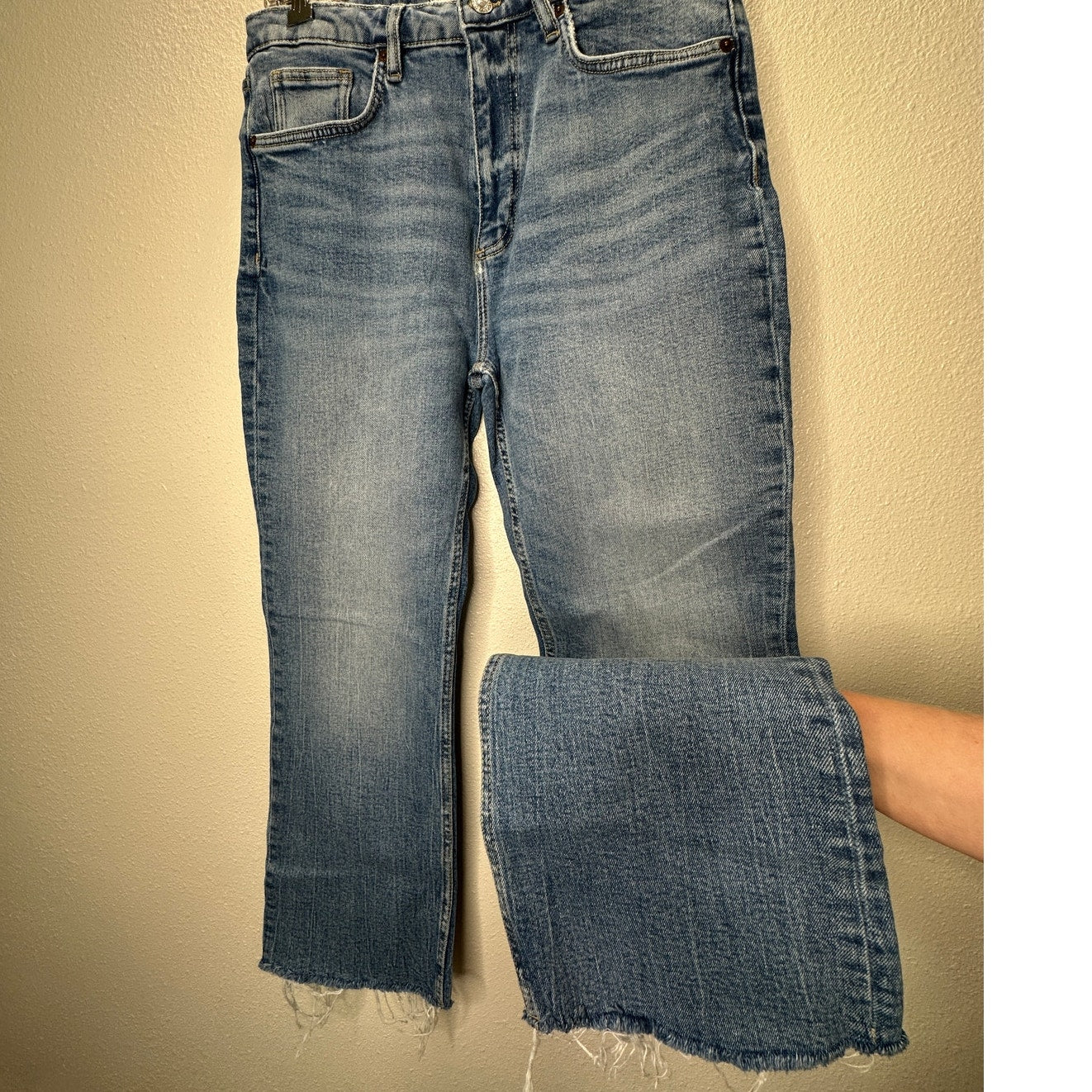 Zara Medium Light Wash Whiskered Raw Hem Mini Flare Leg Midrise Crop Jean 10