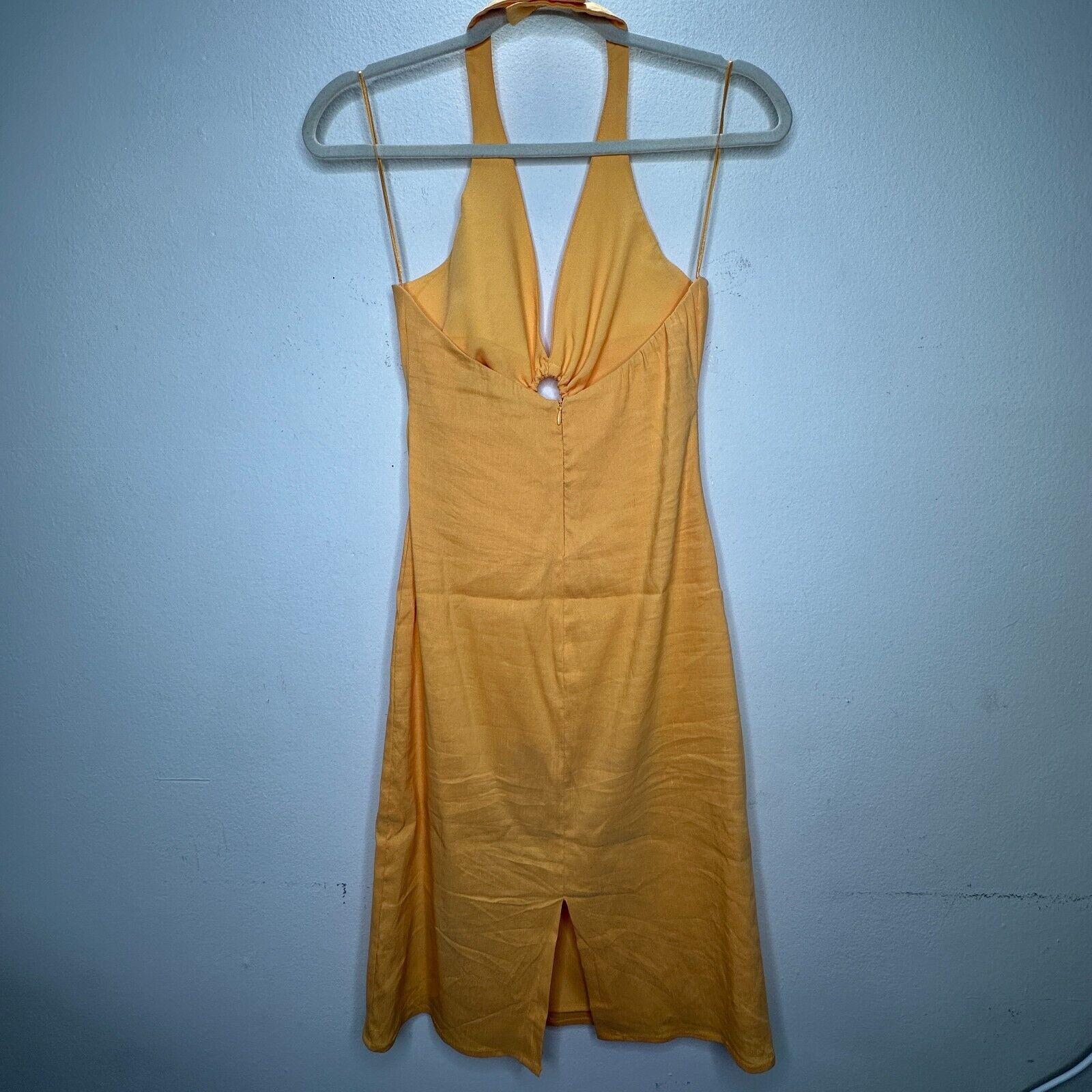 Zara Mustard Yellow Halter V-Neck Sun Dress O-Ring Cutout Front Open Back Small