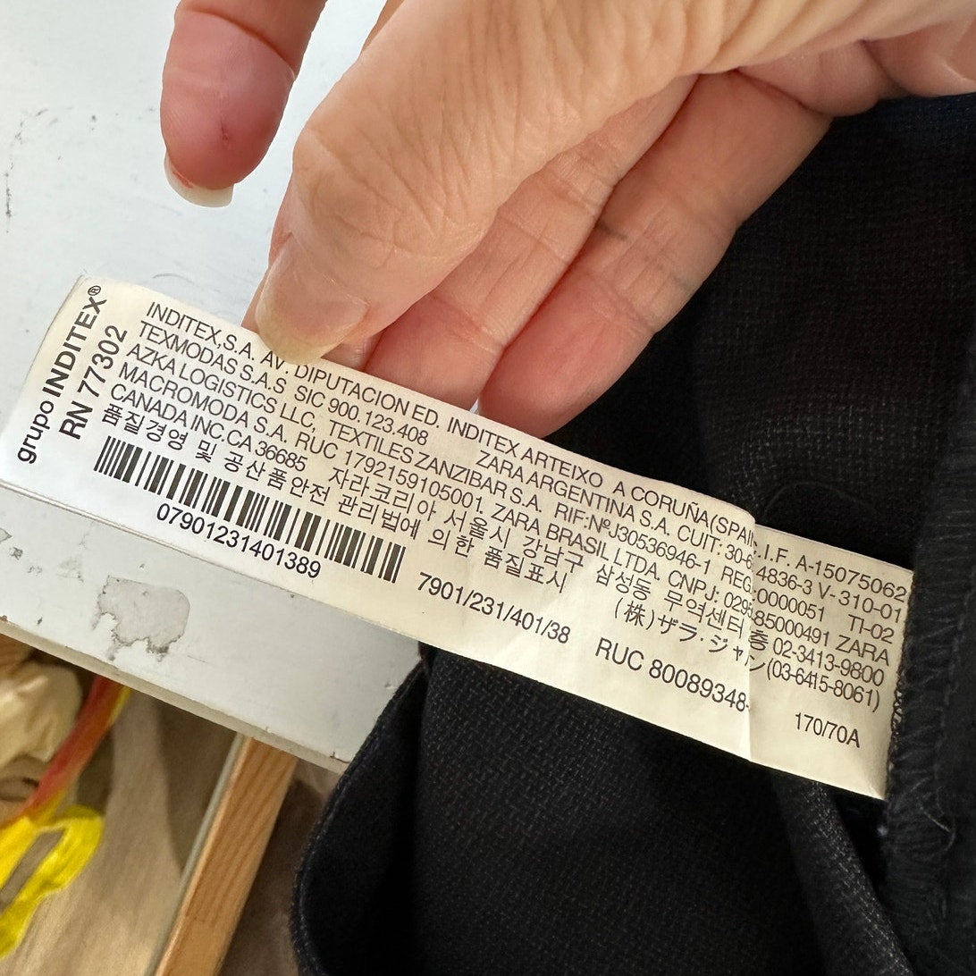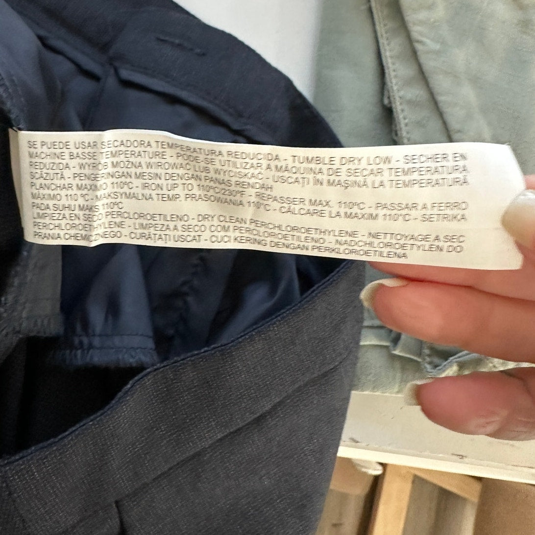 Zara Navy Blue Micro Tweed Straight Leg Cuffed Trouser Pant 6