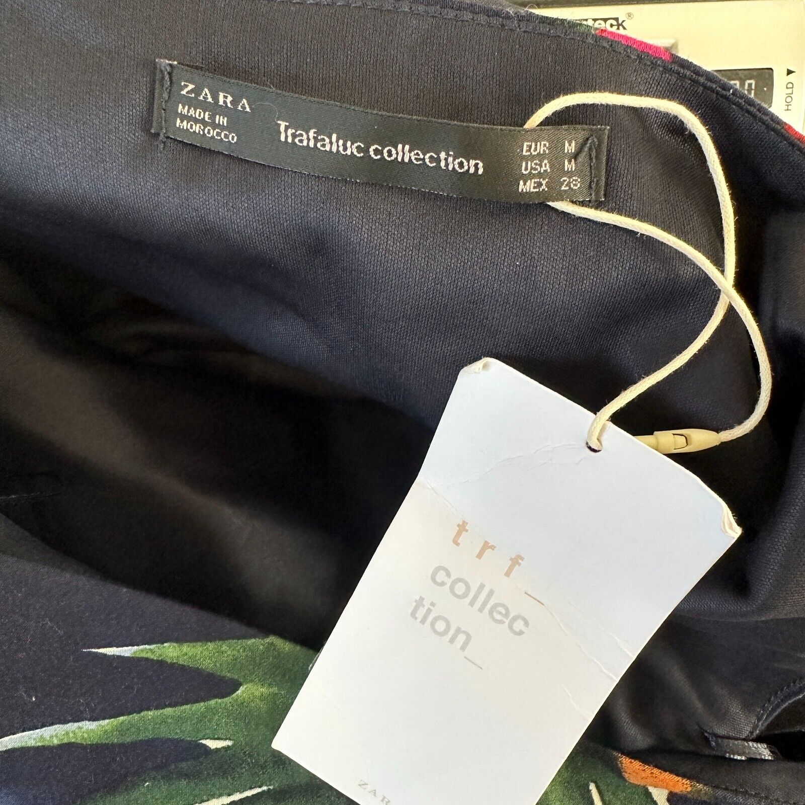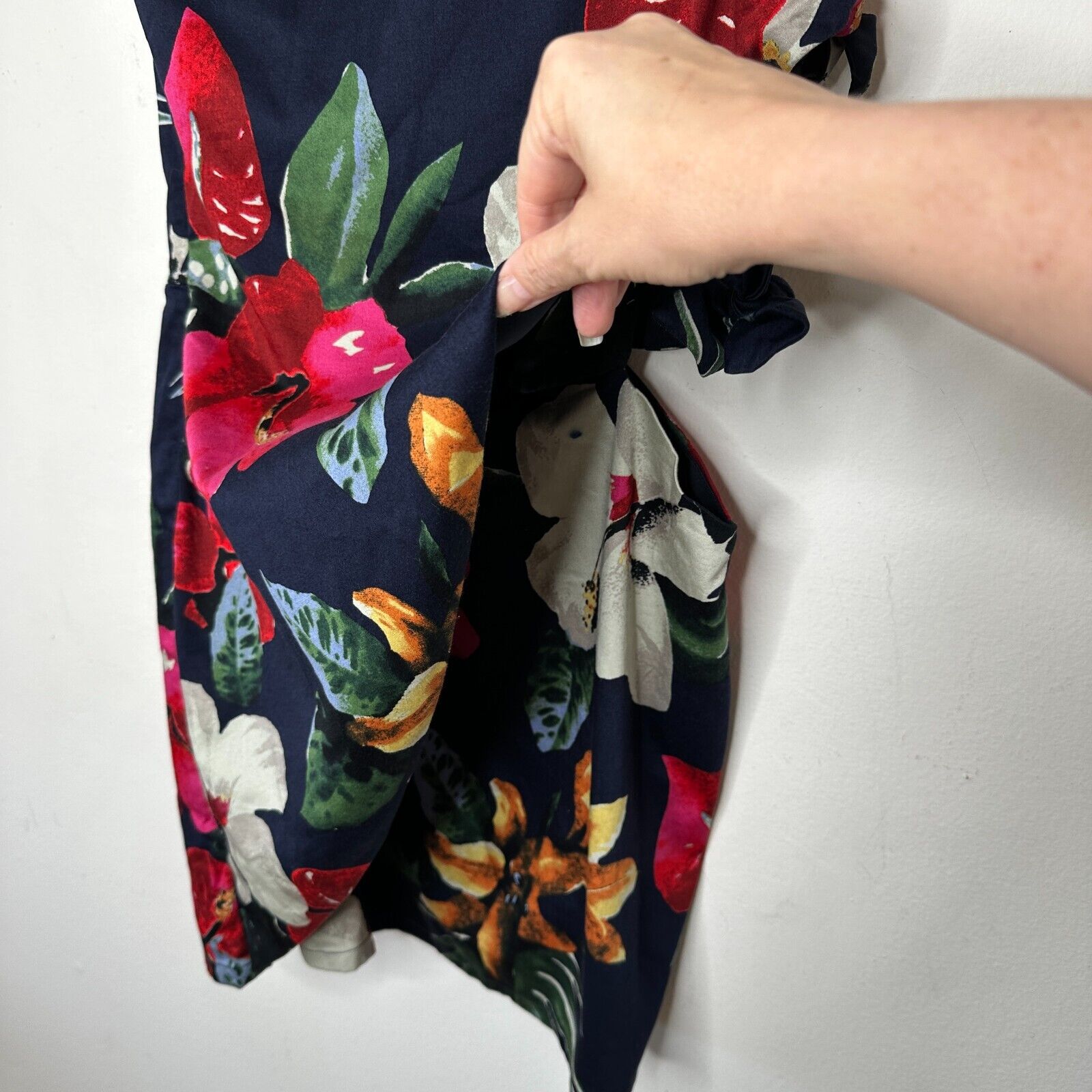 Zara Navy Red White Tropical Floral Short Asymmetric mini Dress.