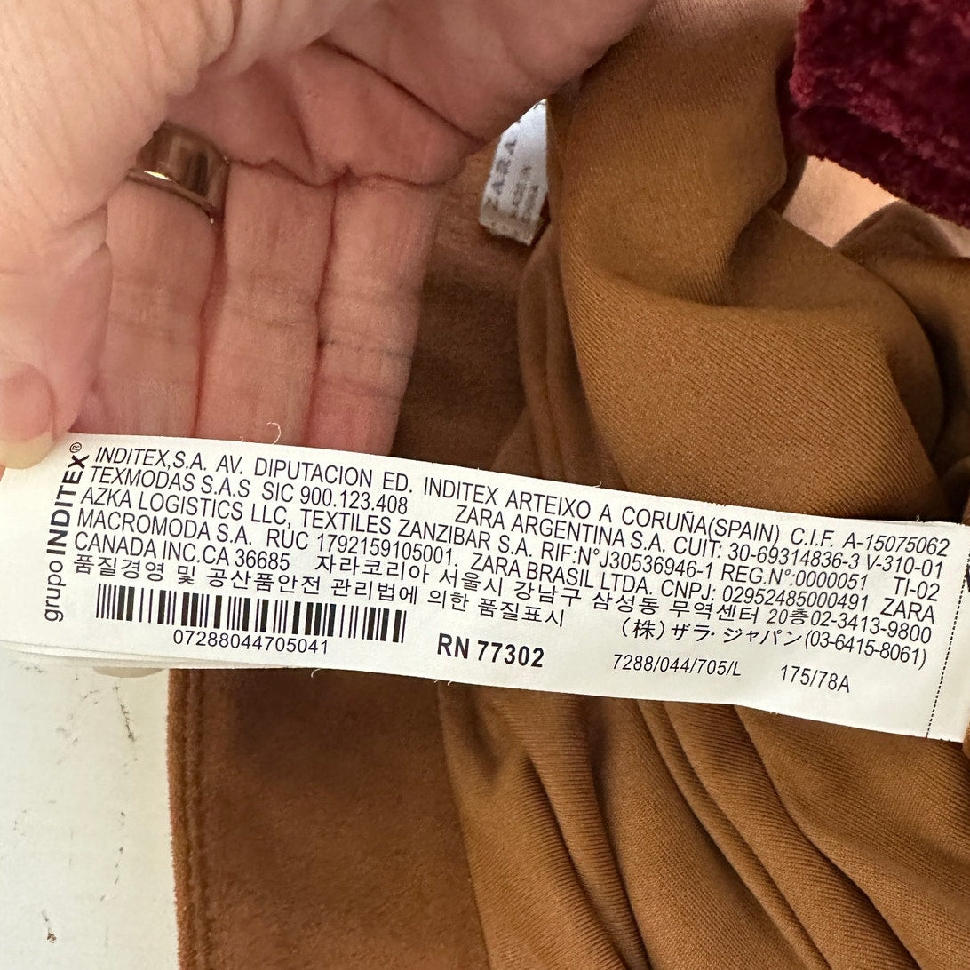 Zara Rust Brown Faux Suede Laser Cut Scalloped Hem Skirt L