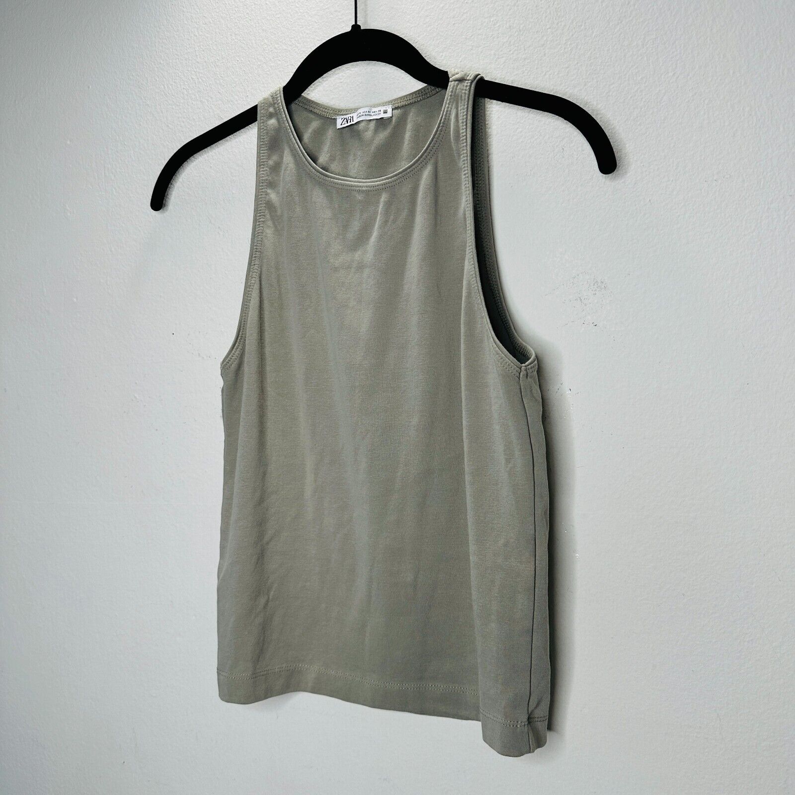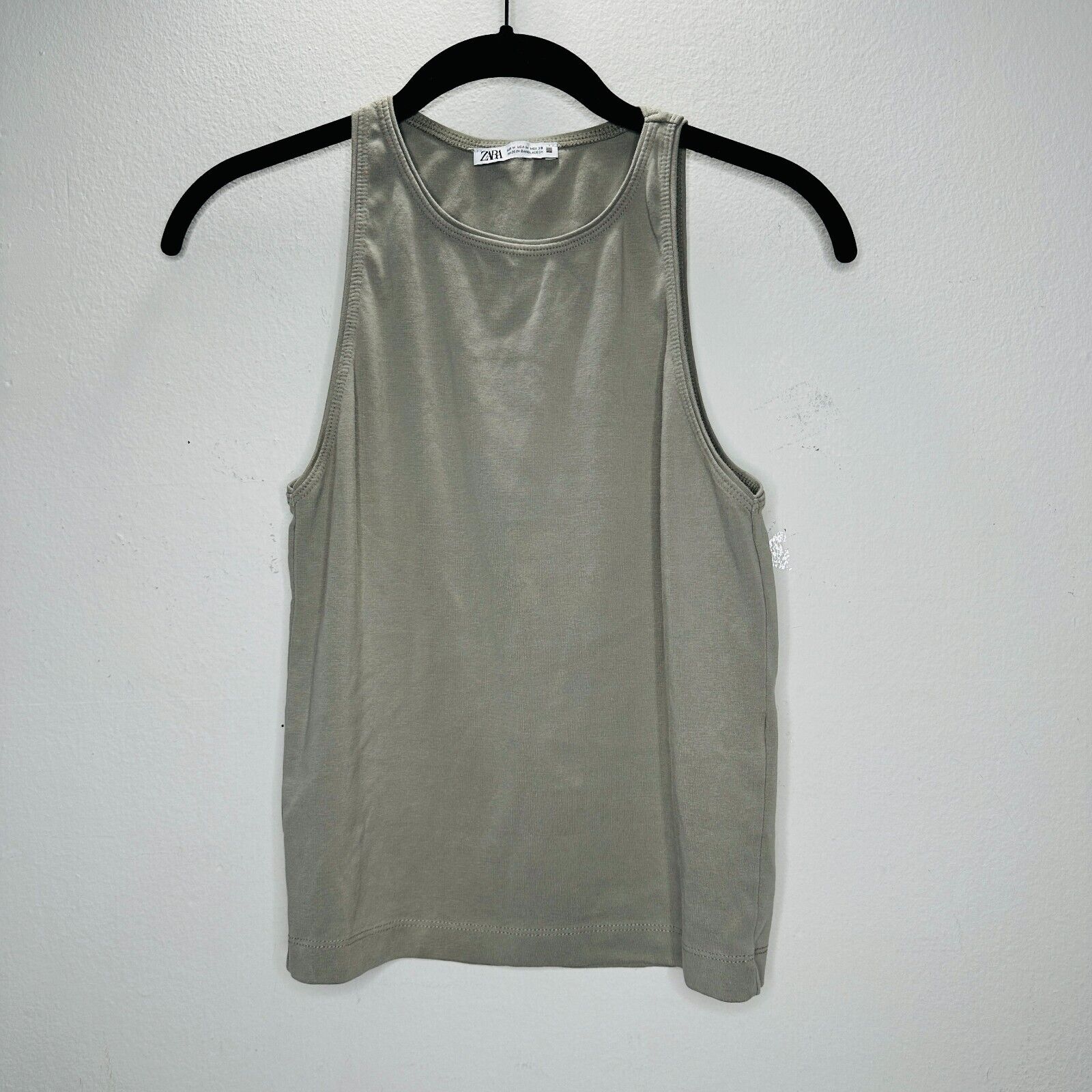 Zara Sand Color High Neck Sleeveless Stretch Tank Top Med