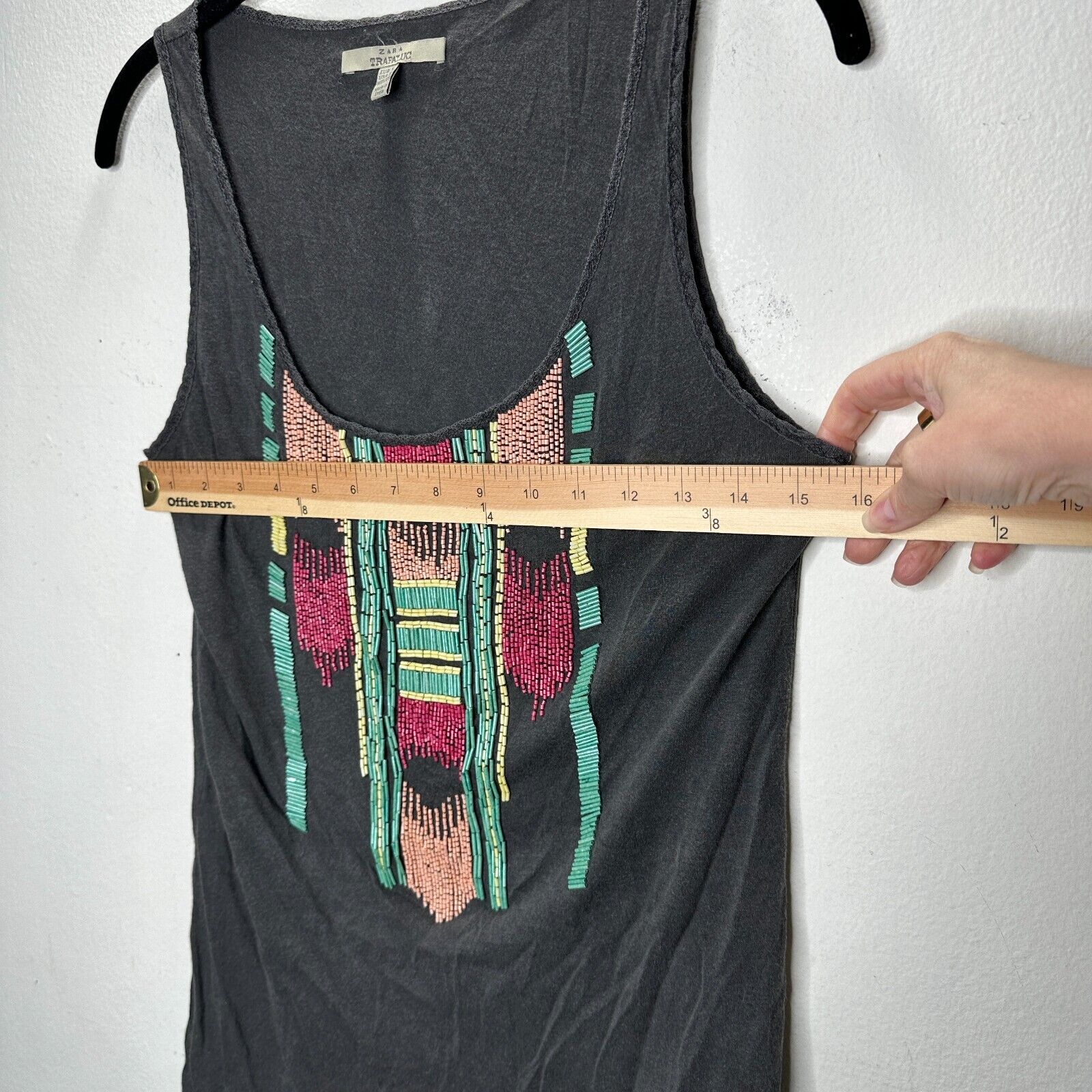 Zara Trafaluc Gray Multicolor Teal Pink Yellow Beaded Aztec Design Tank Top SM